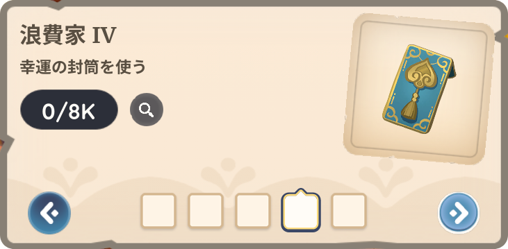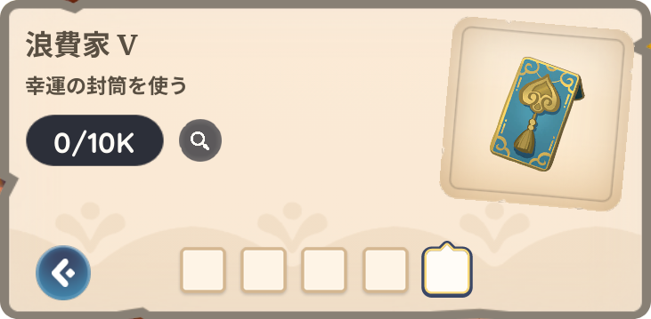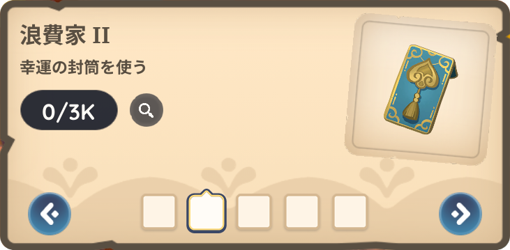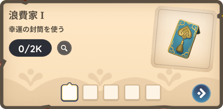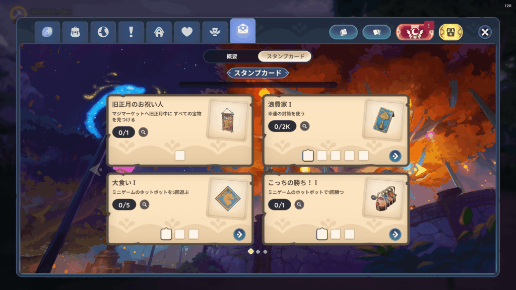 それぞれのカードに書かれた内容をクリアしてスタンプが押されると幸運の封筒や、景品が入手できます。