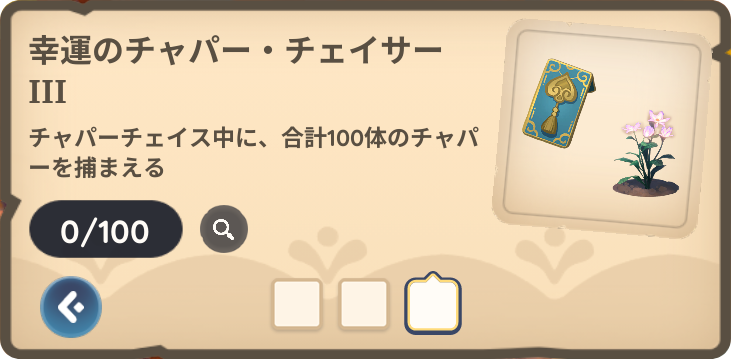チャパーチェイス中に、合計100体のチャパーを捕まえる